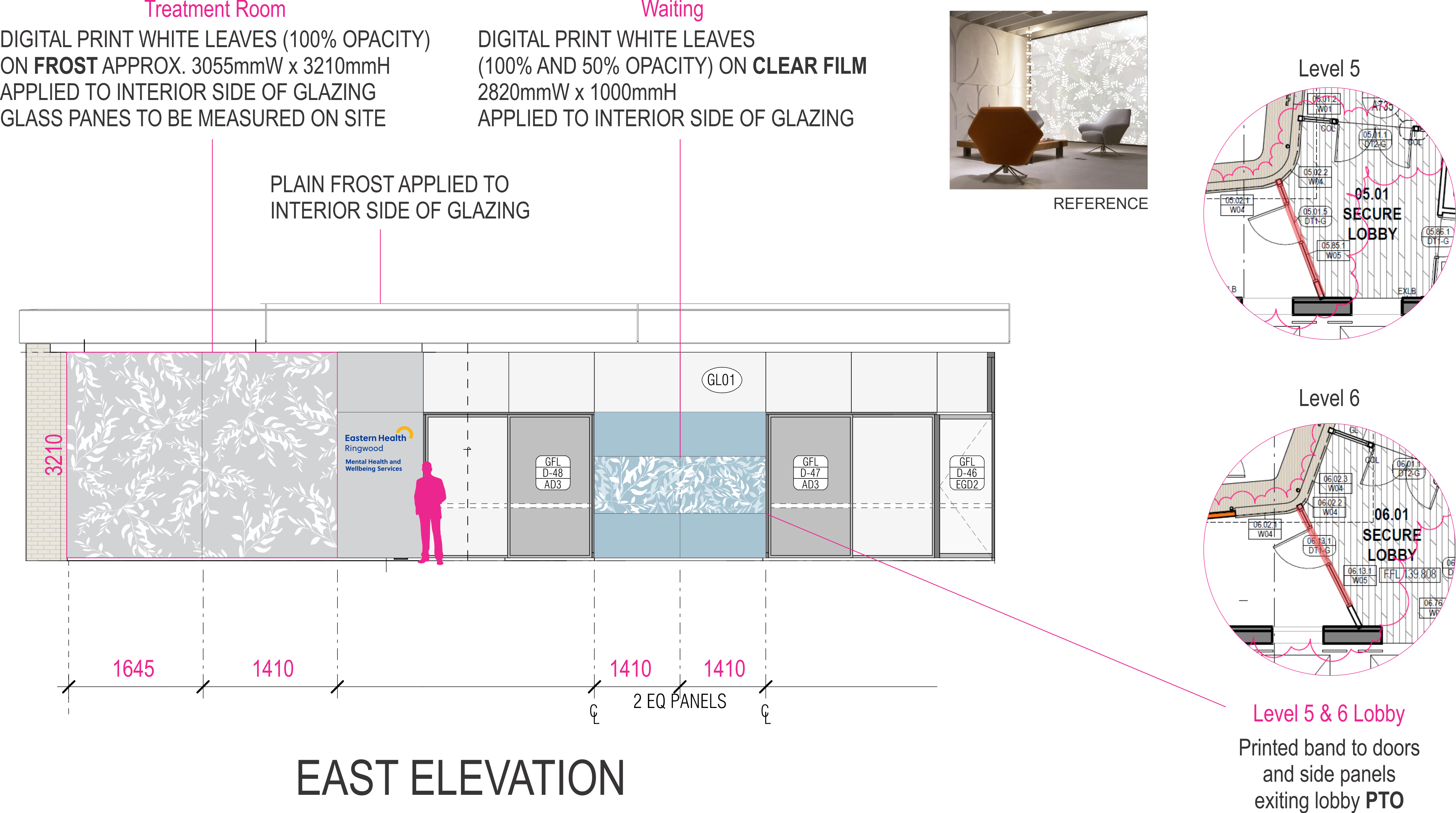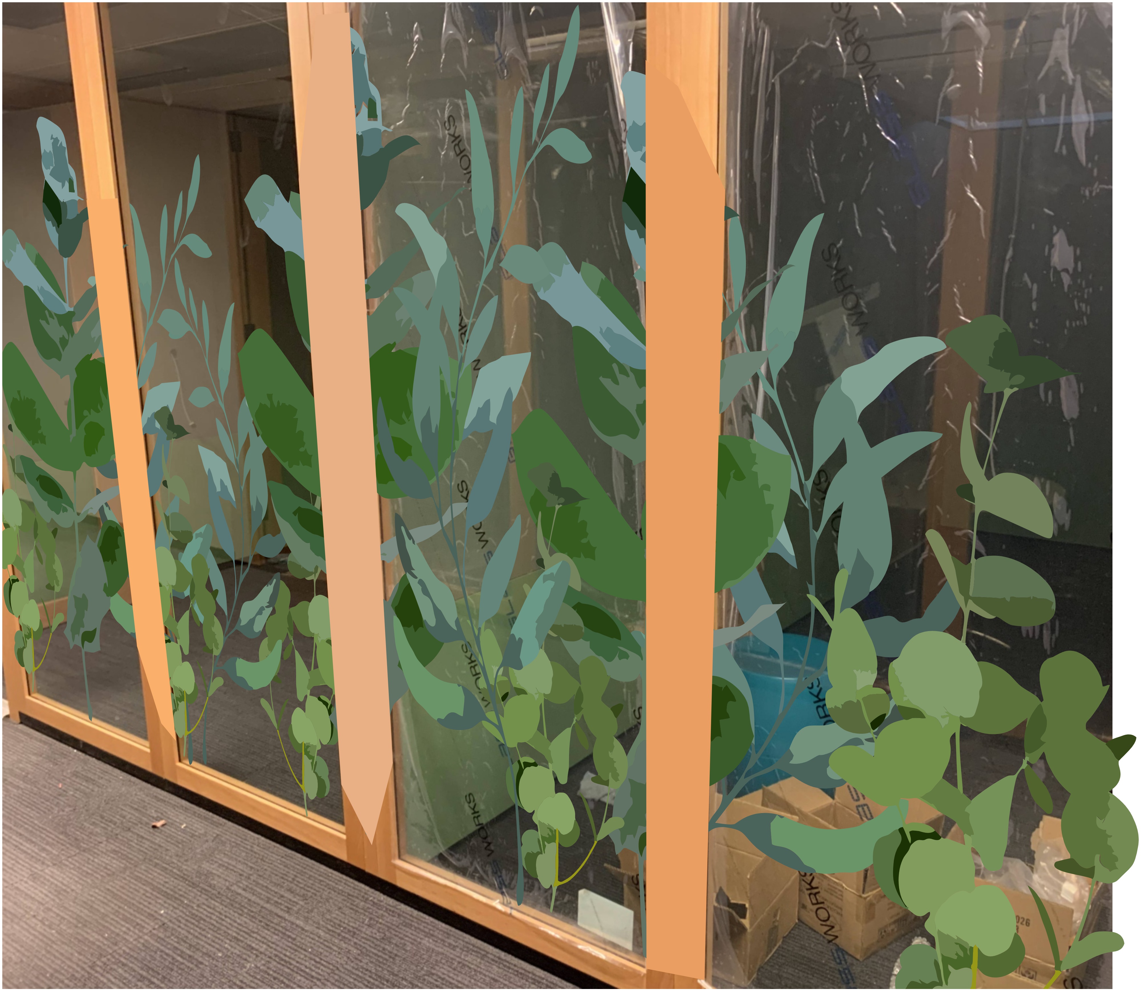 Eucalyptus leaf decal design made for Eastern Health’s mental health and wellbeing consult rooms in Ringwood